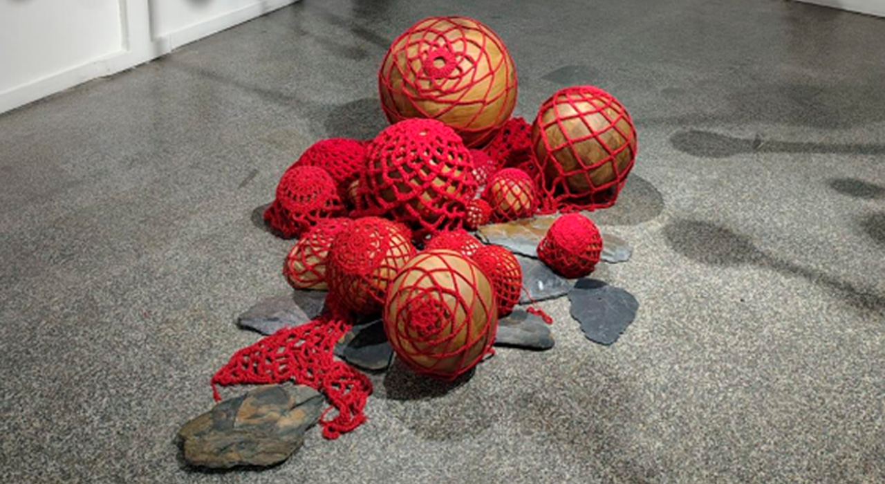 Entre las obras más impactantes se encuentra Cartografías íntimas, una instalación que convierte el espacio en un sistema orgánico en constante reproducción. Corazones, venas y arterias se ramifican por la sala, configurando un mundo sin límites que nace de un cuerpo femenino contenido en sí mismo y luego expandido hasta habitarlo todo.